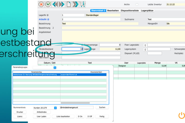 Mindestmenge ist unterschritten? Lassen Sie sich automatisch eine Email-Meldung zusenden, wenn die Mindestmenge erreicht bzw. unterschritten wurde. Bei jeder Lagerbewegung des Lagerartikels wird überprüft ob…
